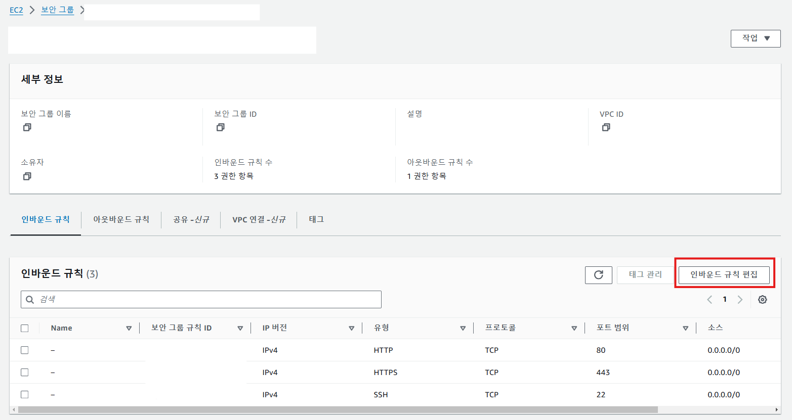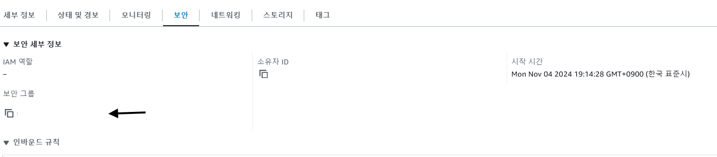 먼저 인스턴스의 보안그룹을 선택합니다.