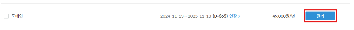 1️⃣ 다시 가비아로 돌아와서 구매한 도메인 관리 설정으로 들어갑니다.