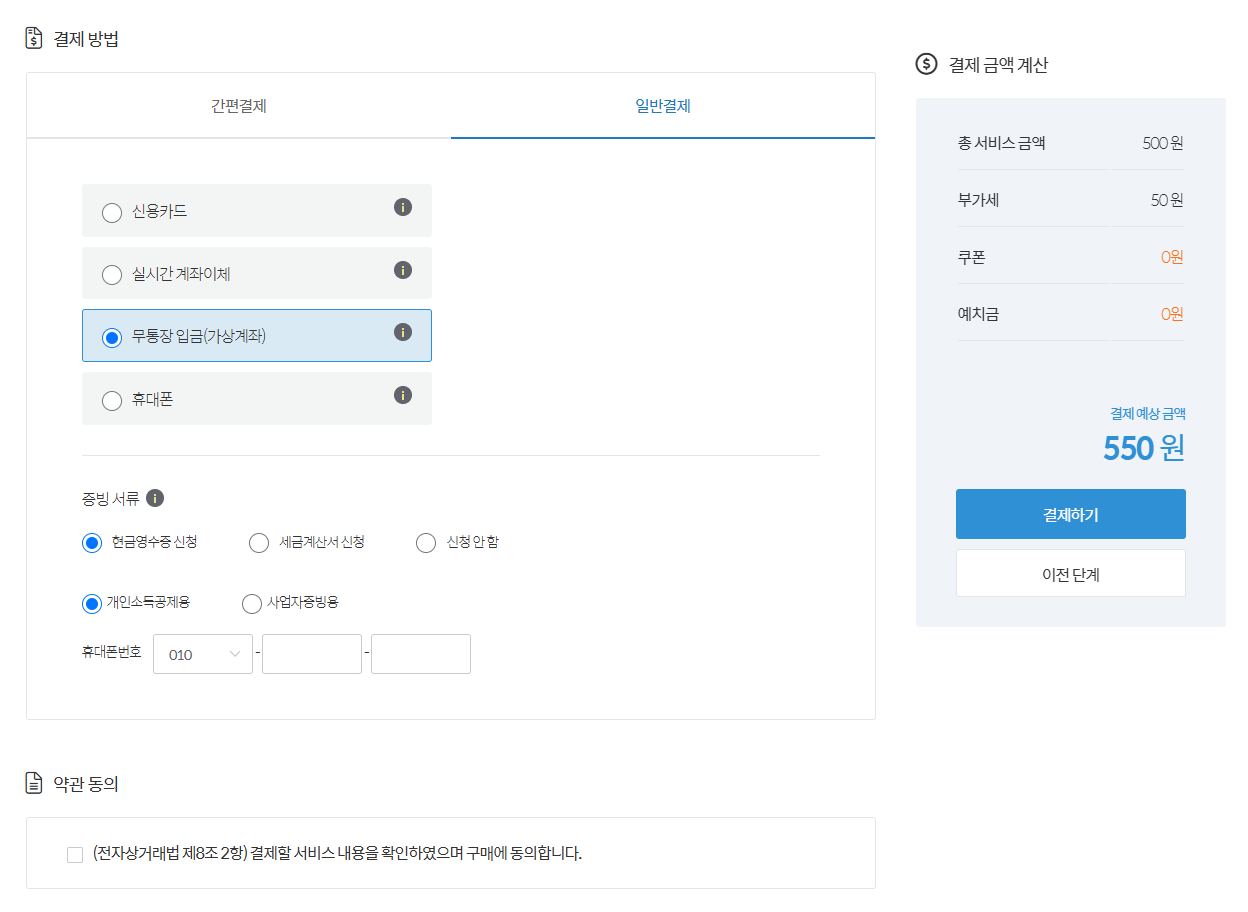 저같은 경우는 1년만 서비스할것이기 때문에 1년만 선택해주고 결제페이지로 넘어갑니다.