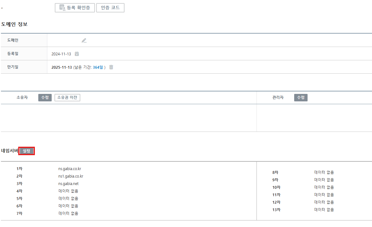 2️⃣ 네임서버 설정을 눌러줍니다.