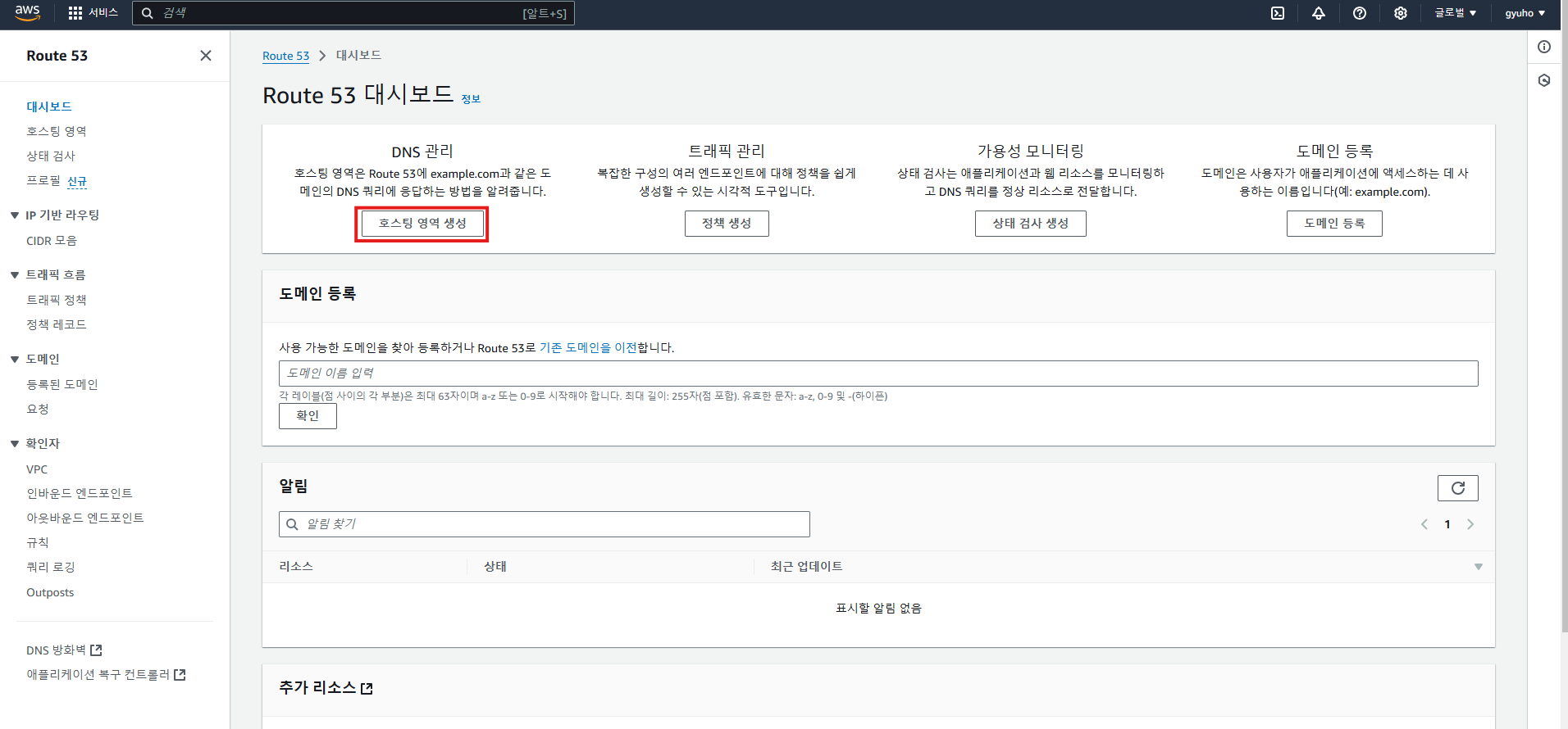 1️⃣먼저 AWS의 Route 53 대시보드에 진입합니다.