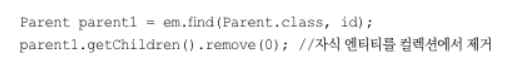 모든 자식 엔티티를 제거하려면 다음 코드처럼 컬렉션을 비우면 된다.
