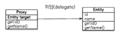 프록시 객체는 실제 객체에 대한 참조(target)을 보관한다. 그리고 프록시 객체의 메서드를 호출하면 프록시 객체는 실제 객체의 메서드를 호출한다.