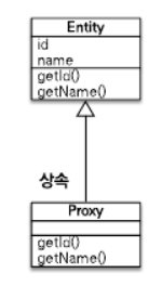 프록시 클래스는 실제 클래스를 상속 받아서 만들어지므로 실제 클래스와 겉 모양이 같다. 따라서 사용하는 입장에서는 이게 진짜 객체인지 프록시 객체인지 구분하지 않고 사용하면 된다.