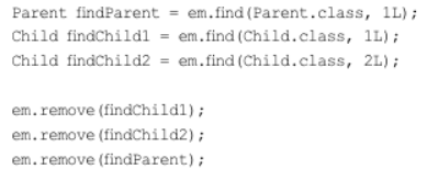 방금 저장한 부모, 자식 엔티티를 모두 제거하려면 다음 코드와 같이 엔티티를 하나씩 제거해야 한다.