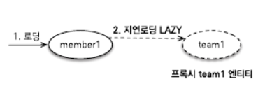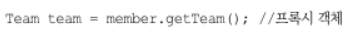 ex) member.getTeam(). getName() 조회한 팀 엔티티를 실제 사용하는 시점에 조회한다.