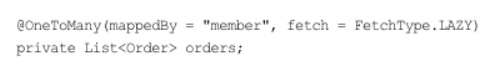 - Member와 연관된 Order는 가끔 사용되므로 지연 로딩으로 설정했다.