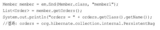 하이버네이트는 엔티티를 영속 상태로 만들 때 엔티티에 컬렉션이 있으면 컬렉션을 추적하고 관리할 목적으로 원본 컬렉션을 하이버네이트가 제공하는 내장 컬렉션으로 변경하는데 이것을 컬렉션 래퍼라 한다.