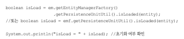 PersistenceUnitUtil.isLoaded(Object entity) 메서드를 사용하면 프록시 인스턴스의 초기화 여부를 확인할 수 있다. 초기화 되었다면 true 안되었다면 false를 반환한다.