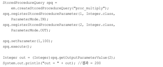 - JPQL에서 스토어드 프로시저를 호출할 수 있다. - 특정 DB에서만 지원하는 문법
