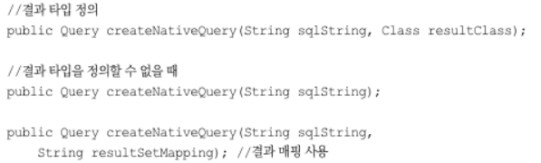네이티브 SQL도 JPQL을 사용할 때와 마찬가지로 Query, TypeQuery를 반환한다. 따라서 JPQL API를 그대로 사용할 수있다. 페이징 처리도 할 수 있다.