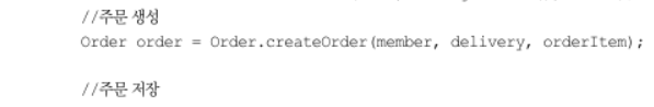 - 생성 메서드(createOrder()) : 주문 엔티티를 생성할 때 사용한다. 주문 회원, 배송 정보, 주문상품의 정보를 받아서 실제 주문 엔티티를 생성한다.